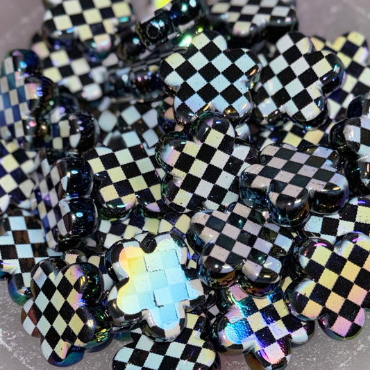 Black & White Checkered Daisy 25mm Acrylic Bead
