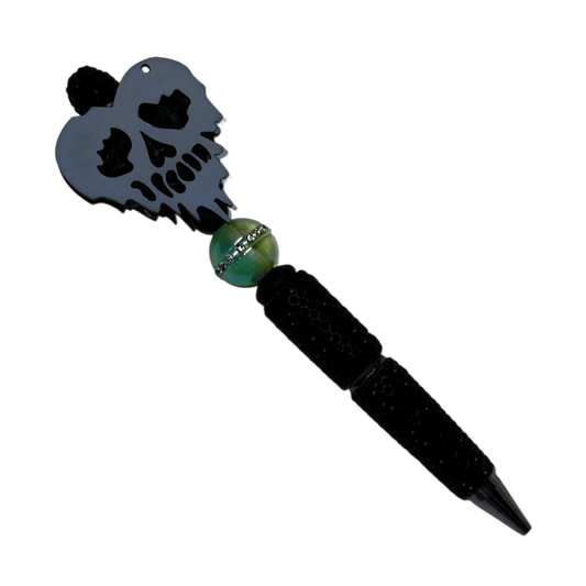 Black Acrylic Heart Skull Face Rhinestone Clay Bead