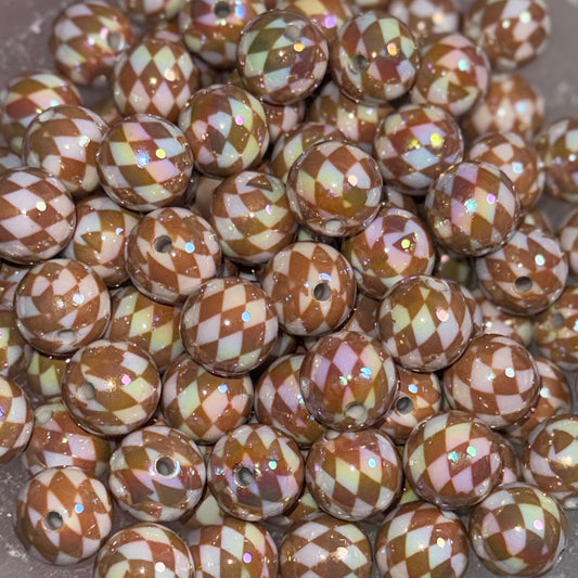 Caramel & White Diagonal Checkered 16mm Acrylic Bead