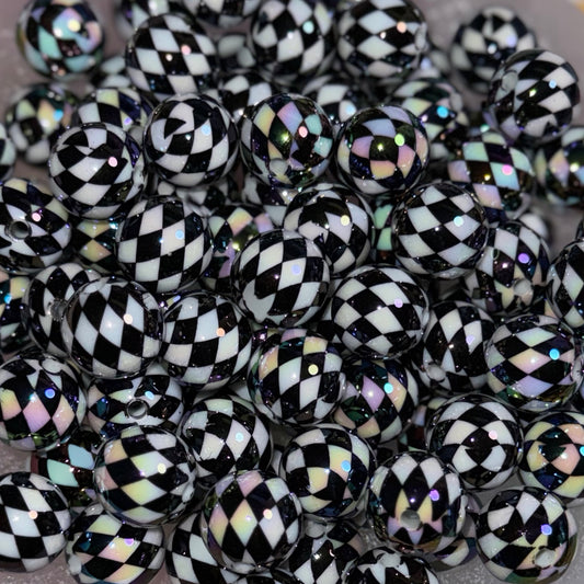 Black & White Diagonal Checkered 16mm Acrylic Bead