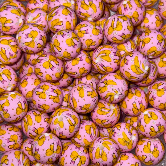 Spring Blossom Checkered Silicone 15mm Printed Bead