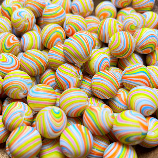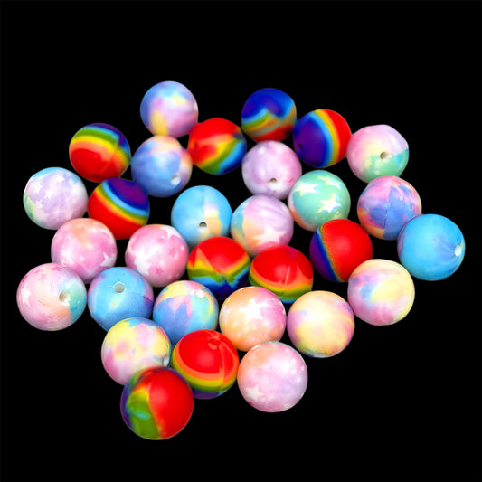 Mixed Tye Dye Silicone 15mm Printed Bead