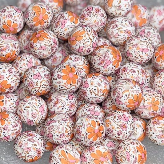 Nurse Fall Blooms Silicone 15mm Printed Bead