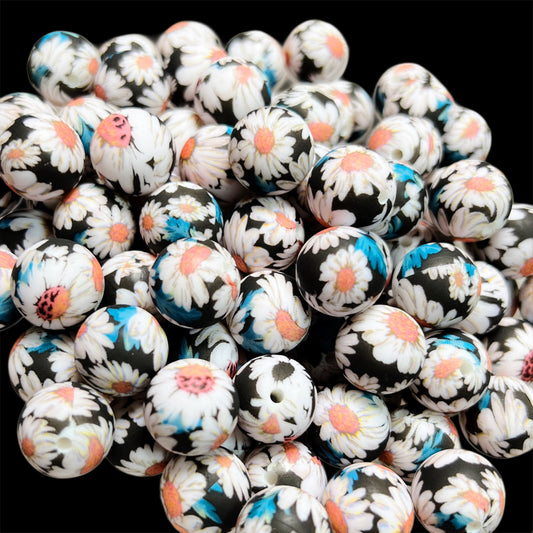 Red, White & Daisy Printed Silicone 15mm Bead *SGC EXCLUSIVE*