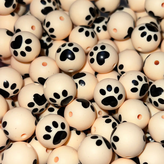 Paw Print Butter Colored Silicone 15mm Printed Bead