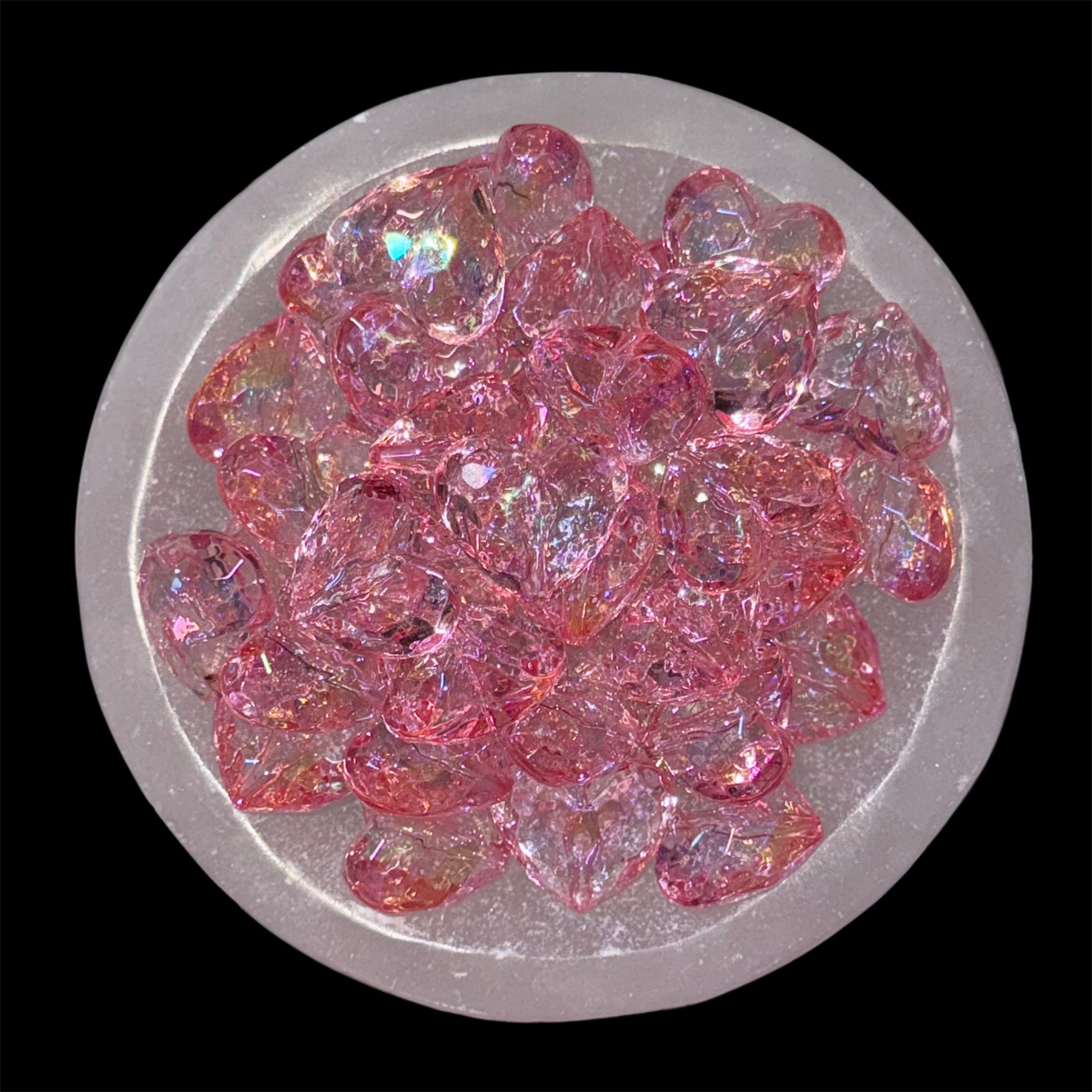 UV Pink 3D Hex Heart Clear 30mm Acrylic Bead