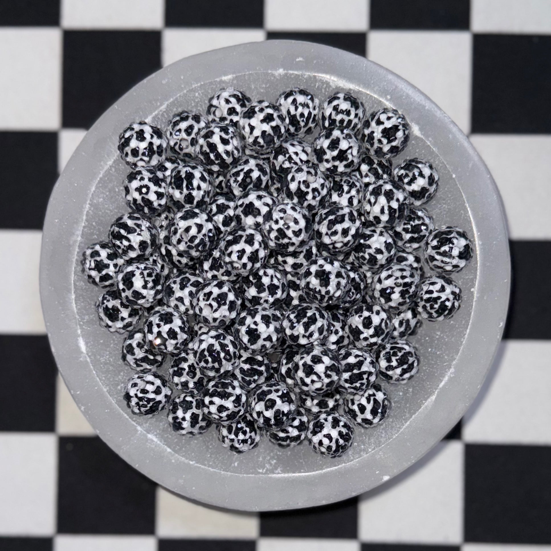 #51 Jelly B/W Cow Print Rhinestone Acrylic Bead (1 Count)