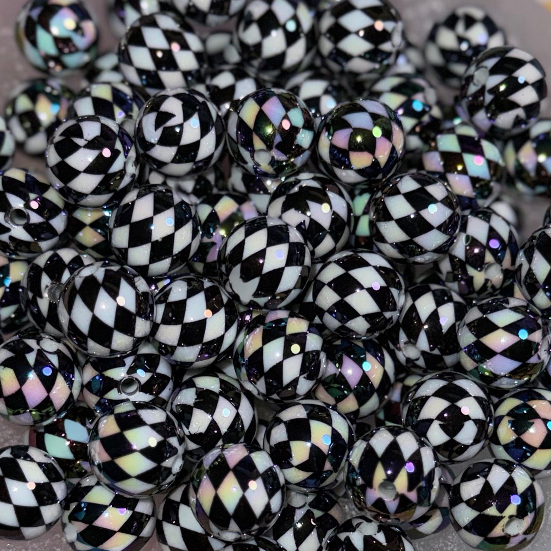 Black & White Diagonal Checkered 16mm Acrylic Bead