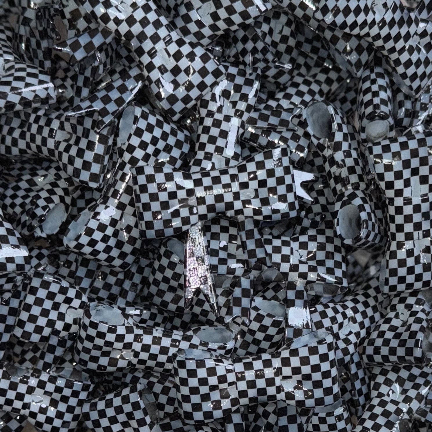 Clear Jelly, Checkered Printed - Shiny 3D Bow Focal Bead (glows in dark)
