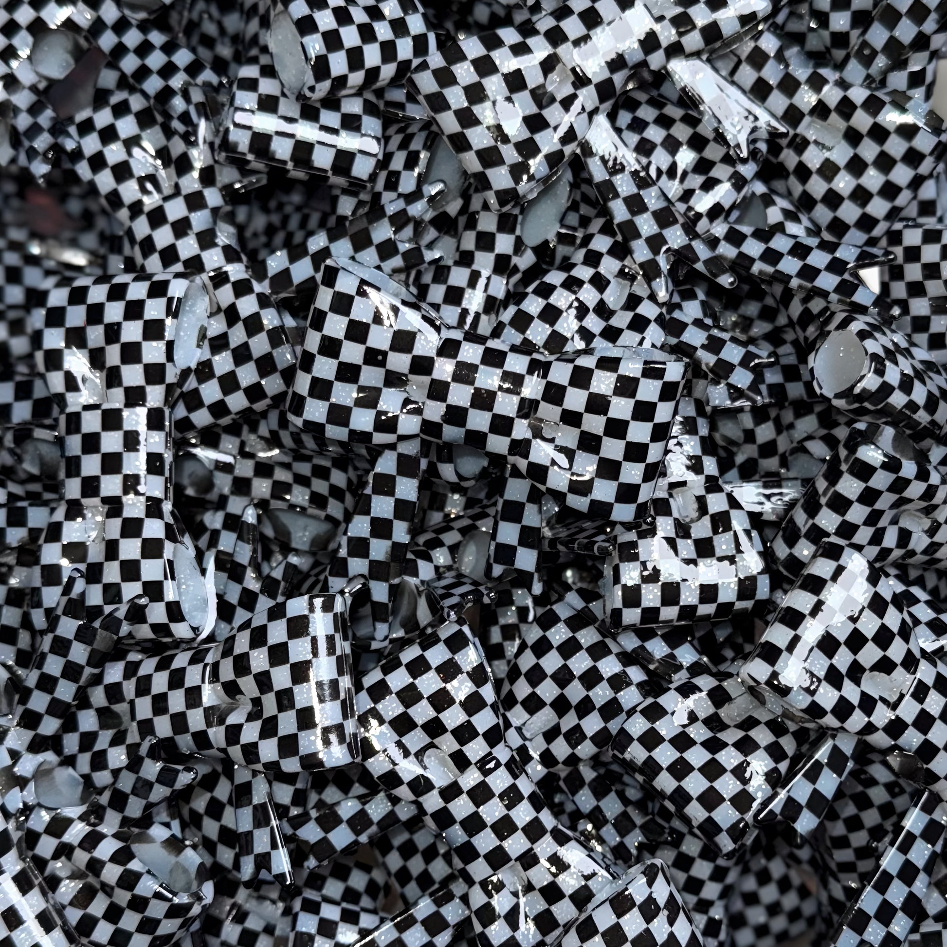 Clear Jelly, Glitter, Checkered Printed - Shiny 3D Bow Focal Bead