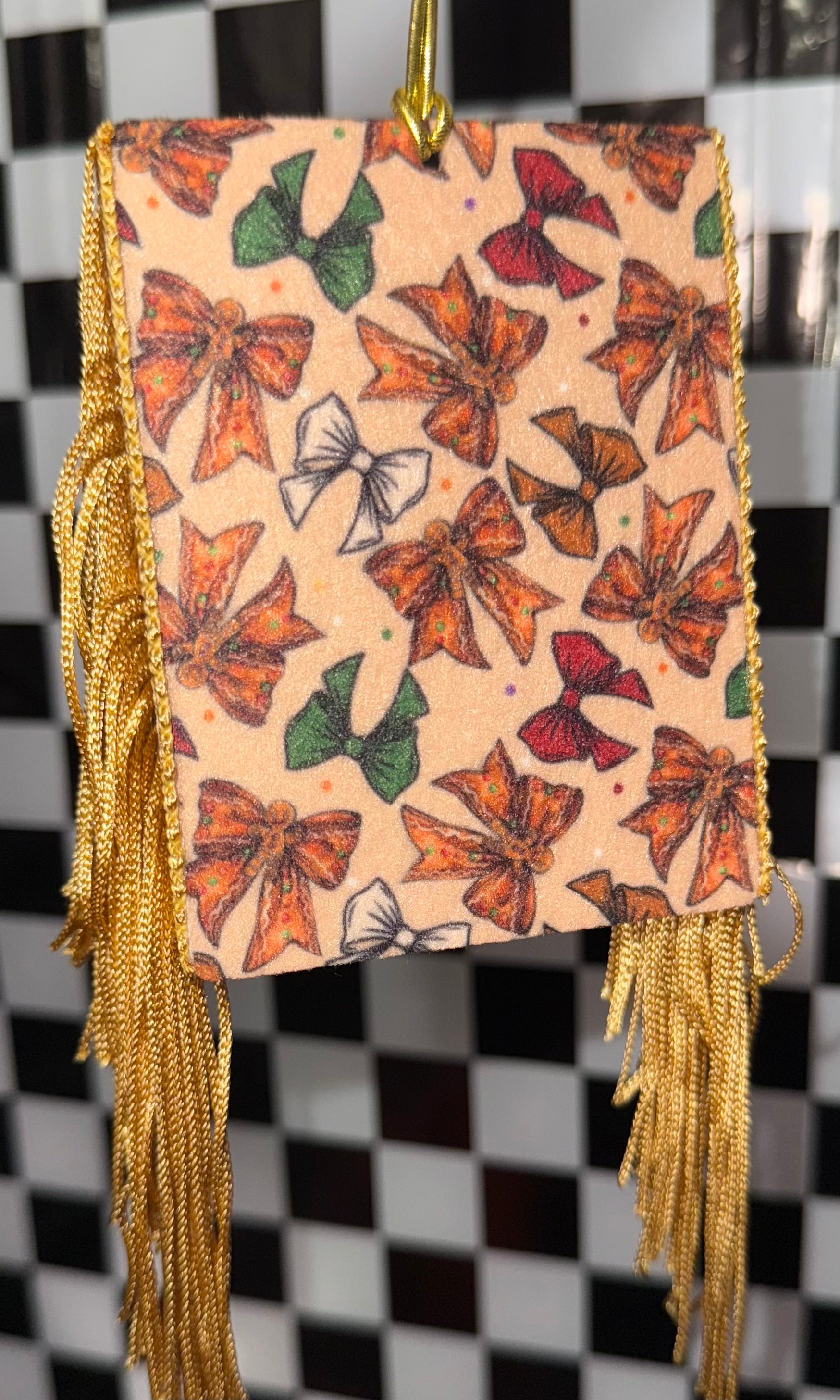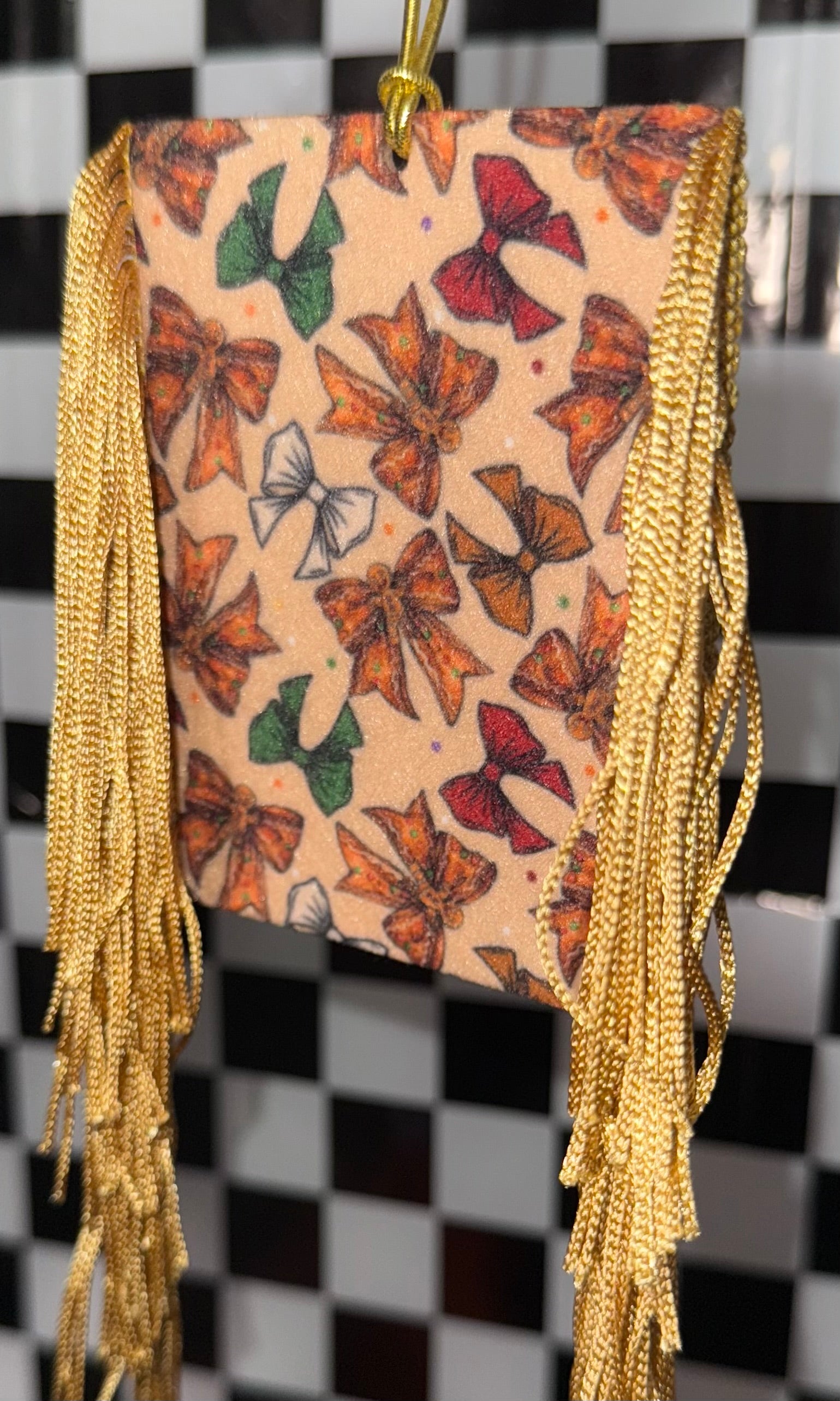 •Freshie will include an attached elastic hanger; elastic is not tied as this helps for you to adjust and hang to level of dash needs.