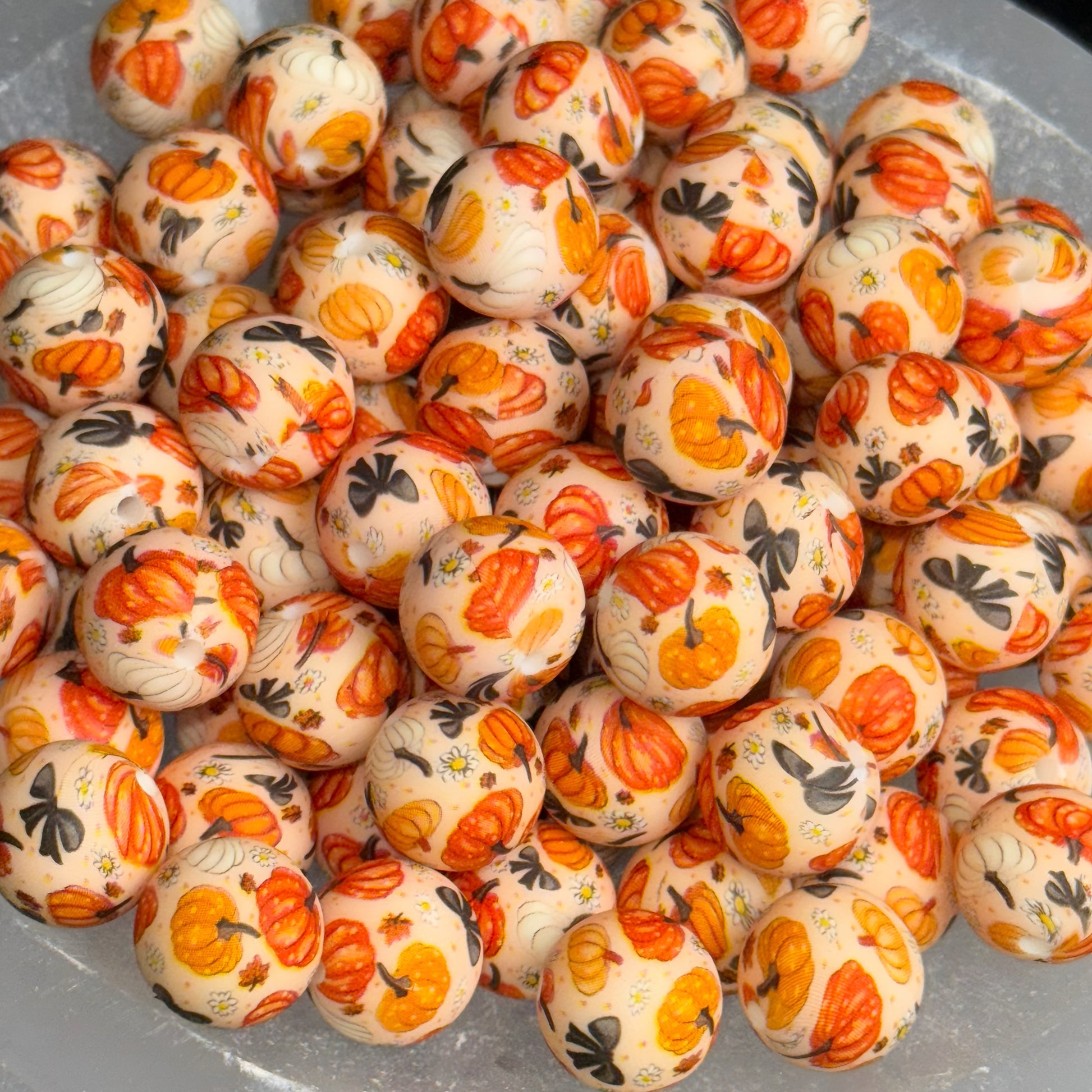 Golden Gourd Garden Silicone 15mm Printed Bead