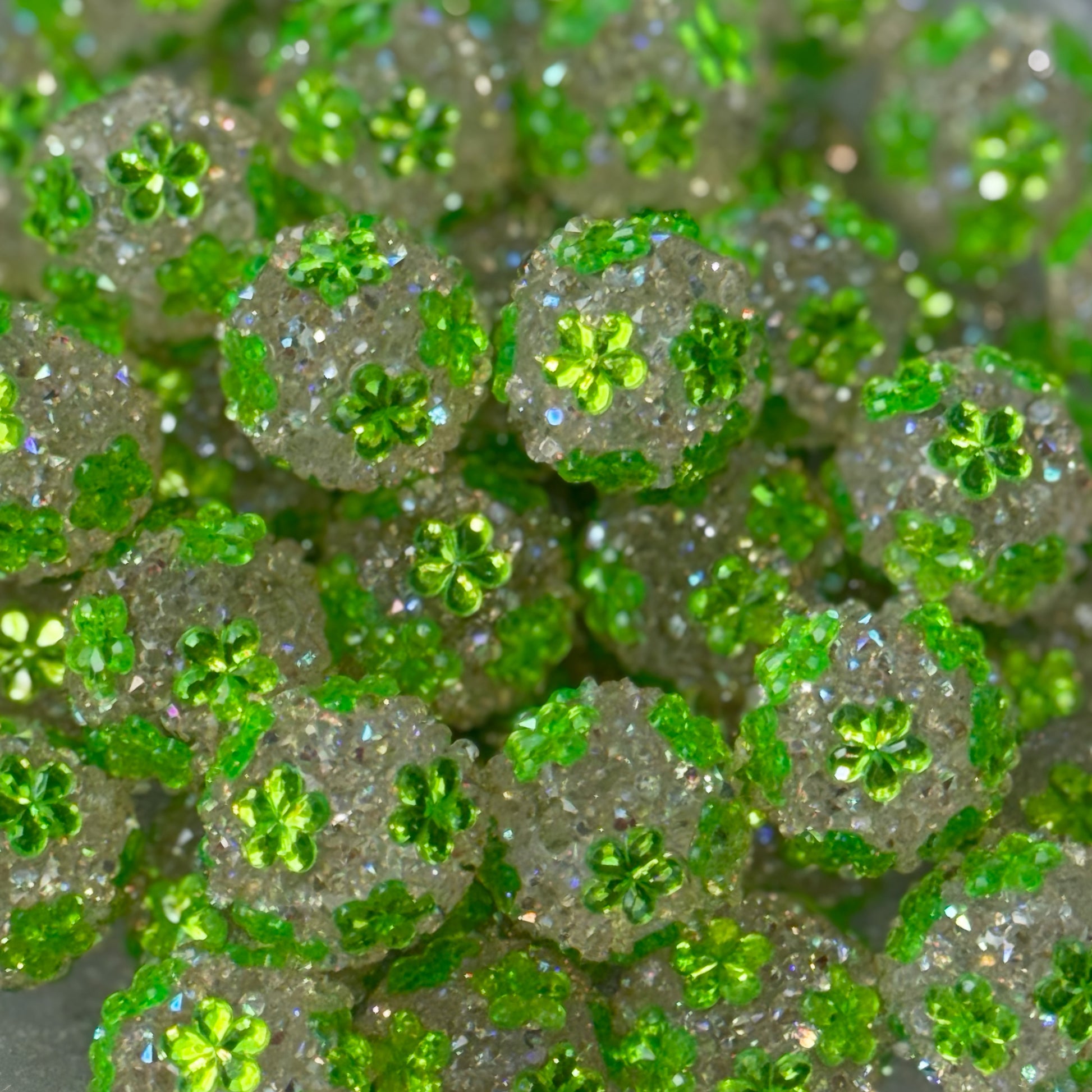 Green Floral Rhinestone Acrylic Bead (1 Count)