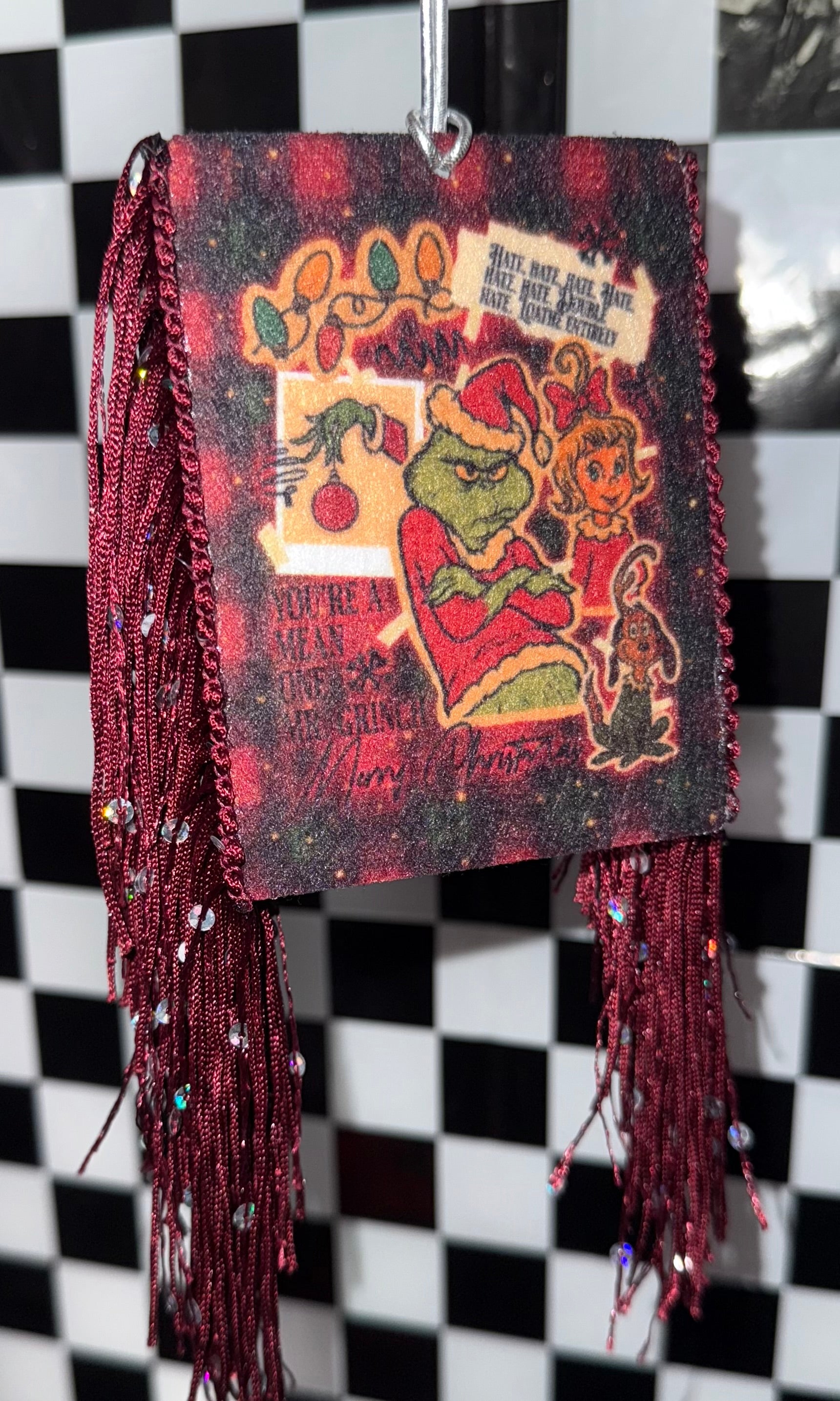 •Freshie will include an attached elastic hanger; elastic is not tied as this helps for you to adjust and hang to level of dash needs.