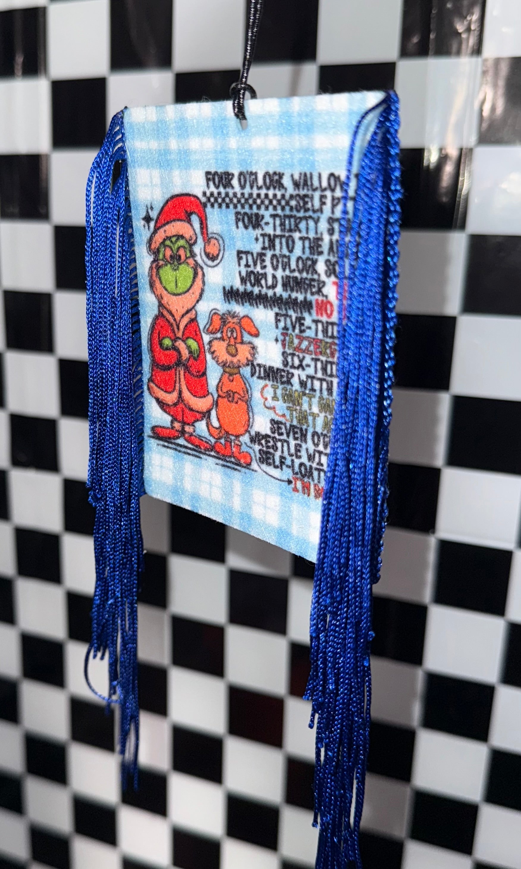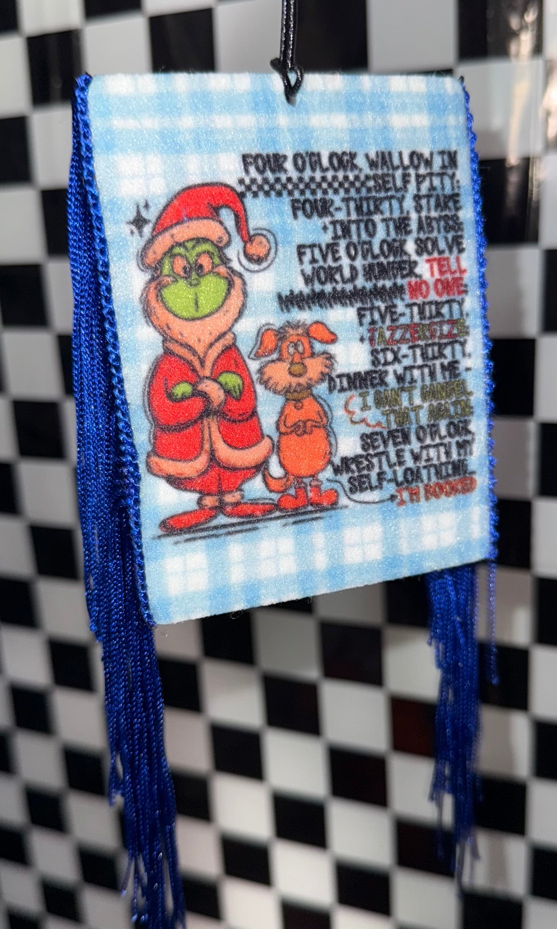 •Freshie will include an attached elastic hanger; elastic is not tied as this helps for you to adjust and hang to level of dash needs.
