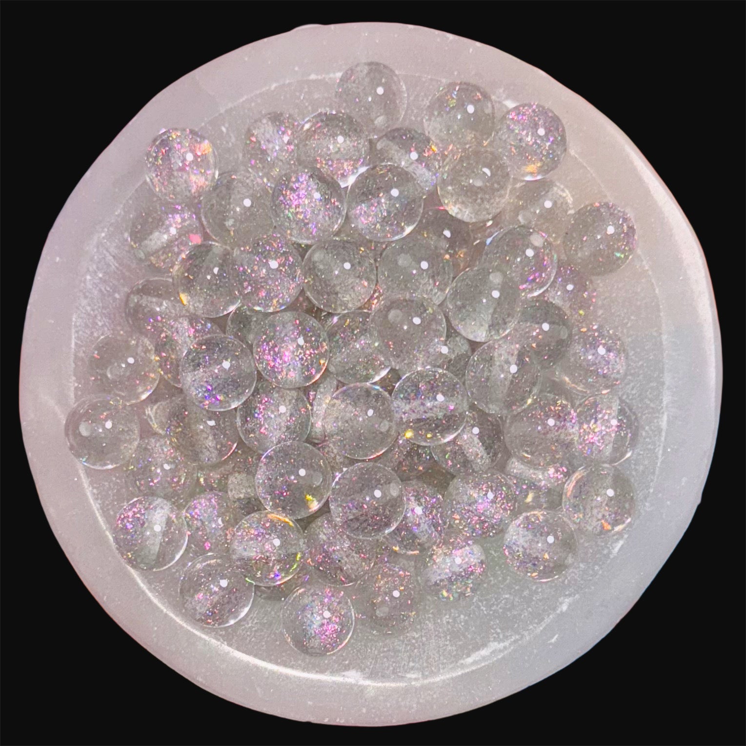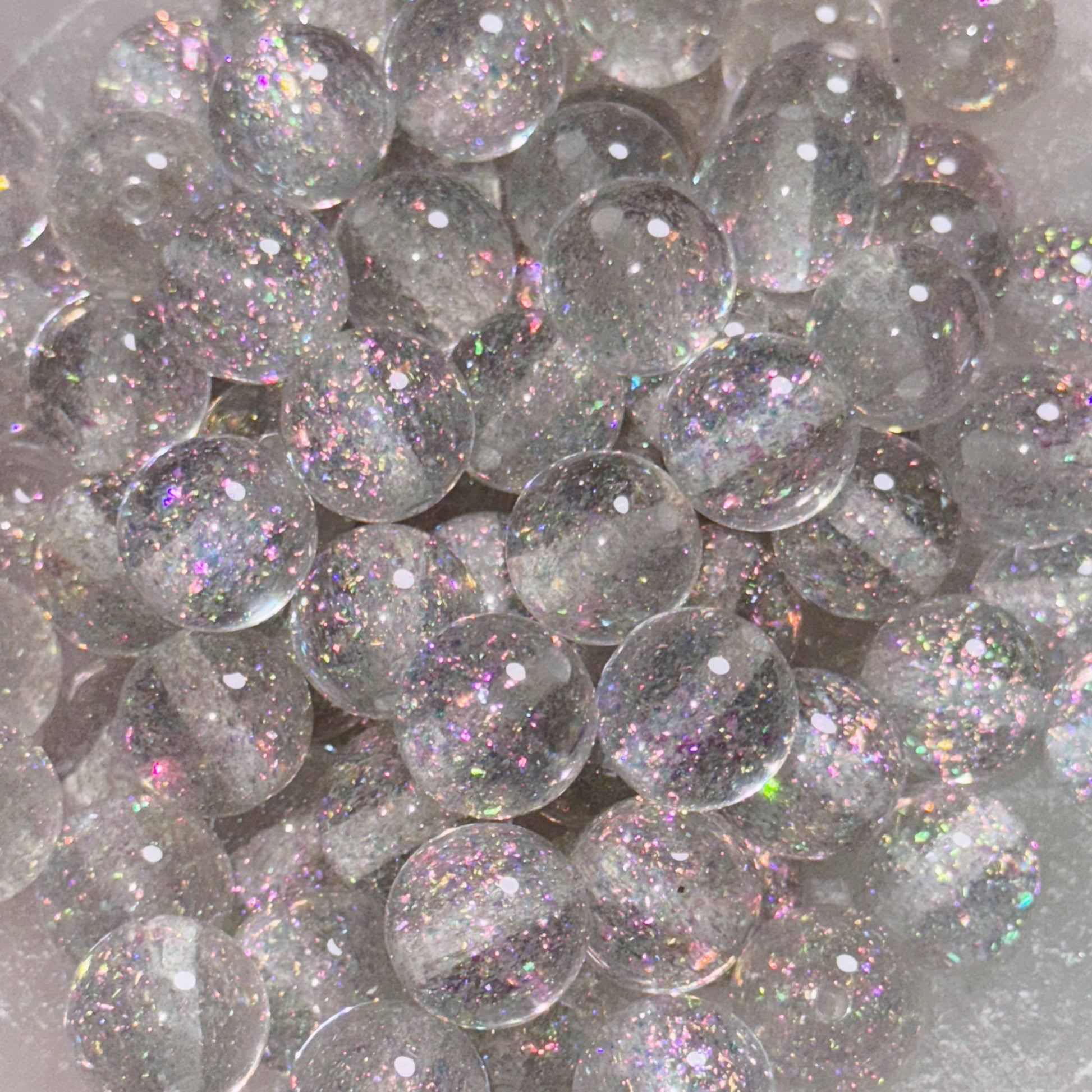 Iridescent Silver Foil Glitter 16mm Resin Bead