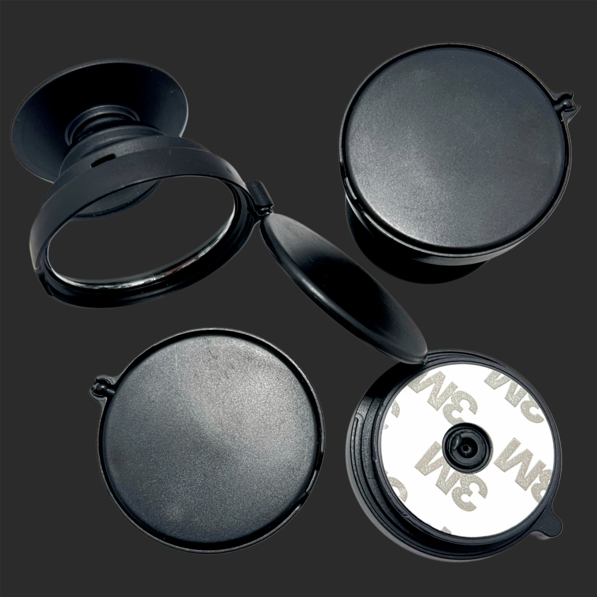Matte Black - Popsocket Like Phone Attachment; Opens to a double mirror - Top Mirror Swivels.
