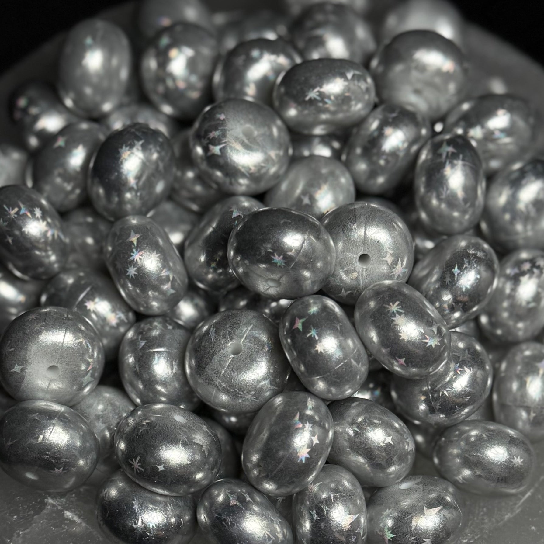 Star Struck Chrome Printed Silicone 20mm Abacus Bead